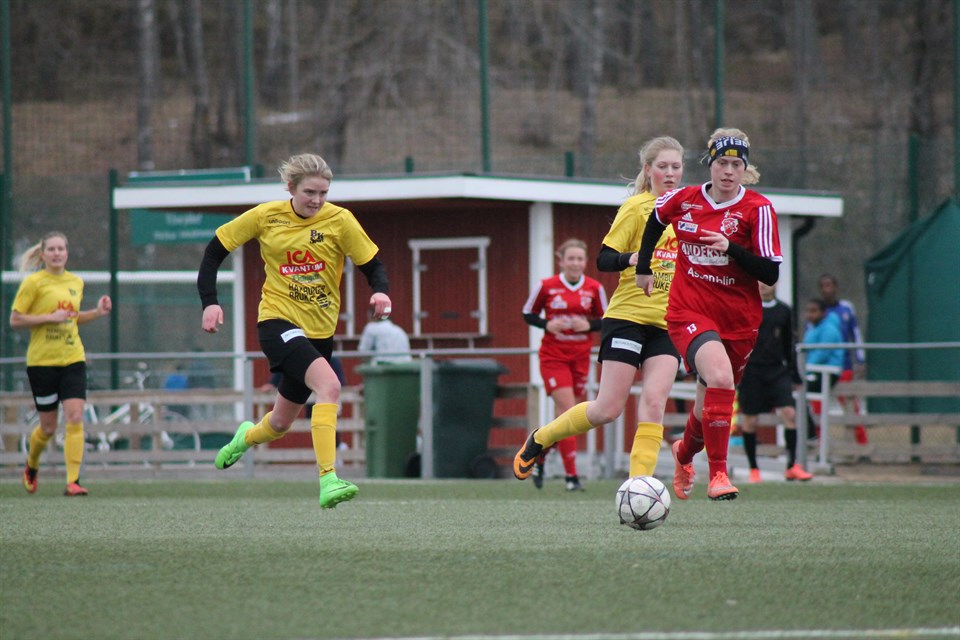 Sala FF - BK Sport 1-1 (0-0) Fjärde och sista träningsmatchen spelades mot Sala FF på Lärkans IP i Sala. Lärkan var en fin anläggning med fina omklädningsrum, ett par gräsplaner och den konstgräsplan som vi spelade på. Konstgräset var förhållandevis kort och snabbt. Betydligt snabbare än Ekängen. Vet inte om BK damer mött Sala FF någon gång tidigare, men för egen del var det första matchen i Sala överhuvudtaget. När matchen börjar har våra spelare lite problem med bollbehandlingen på underlaget. Sala är betydligt mer vana. Hemmalaget tar också kommando över bollinnehavet första kvarten. Trots detta är BK framme på ett par halvfarliga chanser. Resten av halvleken kommer vi in lite bättre i spelet, men det är fortfarande övertag för de röda. Detta gör att vi får springa mycket och det är rätt många gula tröjor som ser rent av trötta ut när det blir halvlek. Andra halvleken startar med lite högre tempo och mera powerfotboll. En hel del närkamper både mitt på plan och närmare målen. Hemmalaget har flera frisparkar och inlägg som endera plockas ner av oss eller passerar hela spelarhögen. Själva har vi en del anfall som till större delen kommer längs marken. Här kan nämnas bla Nattas skott som tippas strax utanför stolpen och Emelies löpning där hon försöker runda målvakten och i princip knuffas ur straffområdet. Med mindre än tjugo kvar lägger Midmo en bra boll på höger kant till Emelie som kommer ner till kortlinjen, spelar in framför mål där Lisa till slut sätter bollen i mål på Nattas retur. Det här känns som en match som kan gå precis hur som helst och just nu är det fördel BK. Vi har faktiskt någon bra chans till innan Sala kvitterar med tio kvar. På ett inlägg från höger får en spelare drömträff på volley. Ylva reflexräddar och får bollen att ändra riktning men den går i ribban, ner på mållinjen och in. På slutet är det flera byten och lite sparka och spring. Sala har faktiskt en boll till inne, men den gills inte pga offside. Det här kändes som sagt som det kunde gå precis hur som helst och just därför var det väl rättvist med oavgjort. Hur som helst är nog Sala det bästa laget vi mött i vår och vi fick jobba hårt för att hänga med i matchen. Vi önskar dem lycka till i serien. För egen del gäller det nu seriepremiär på fredag mot Trosa-Vagnhärad. Trosa drog sig ur div3 -2014 Därefter vann man div5-2015 och div4-2016 Sedan kom man fyra i div3-2017 Inget dåligt motstånd i första div3 matchen sedan 2:a oktober 2010. Kom och heja på våra duktiga tjejer!